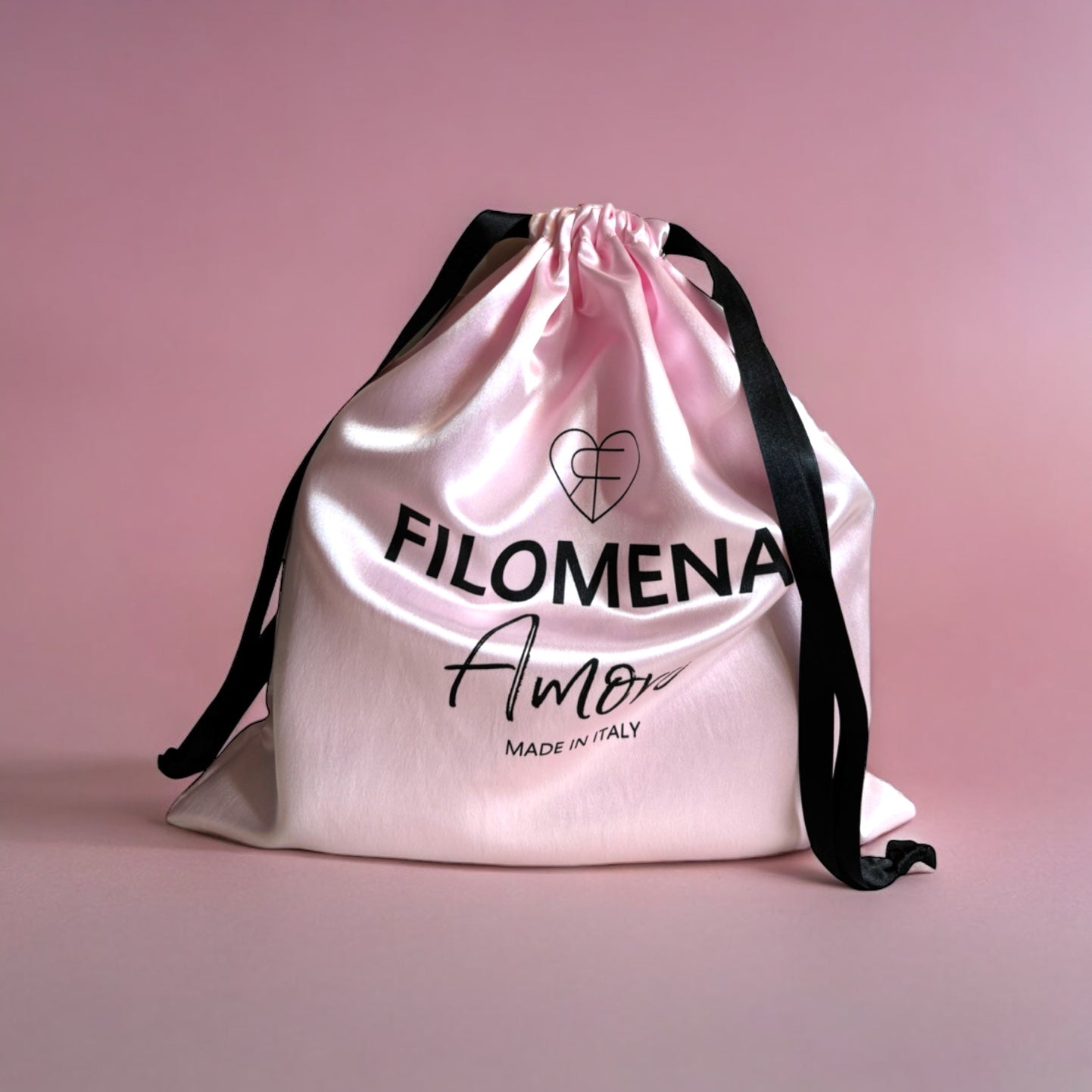 For each bag you will receive as a gift the precious pink satin dustbag made in Italy to store your Filomena Amore handbag with care.