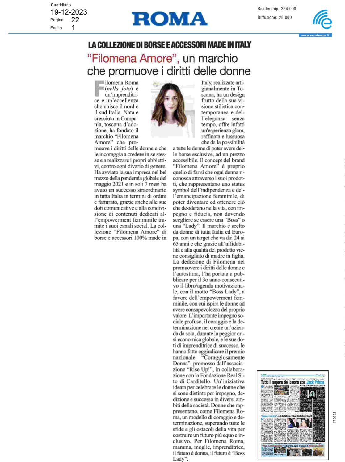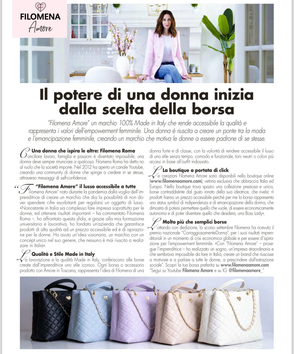 This section is dedicated to the awards, press and recognitions that Filomena and her brand have won over the years. Each recognition not only celebrates the attention to design, quality and excellence of our Made in Italy collections, but also represents a tribute to the courage, determination and commitment that Filomena has shown in promoting female empowerment.